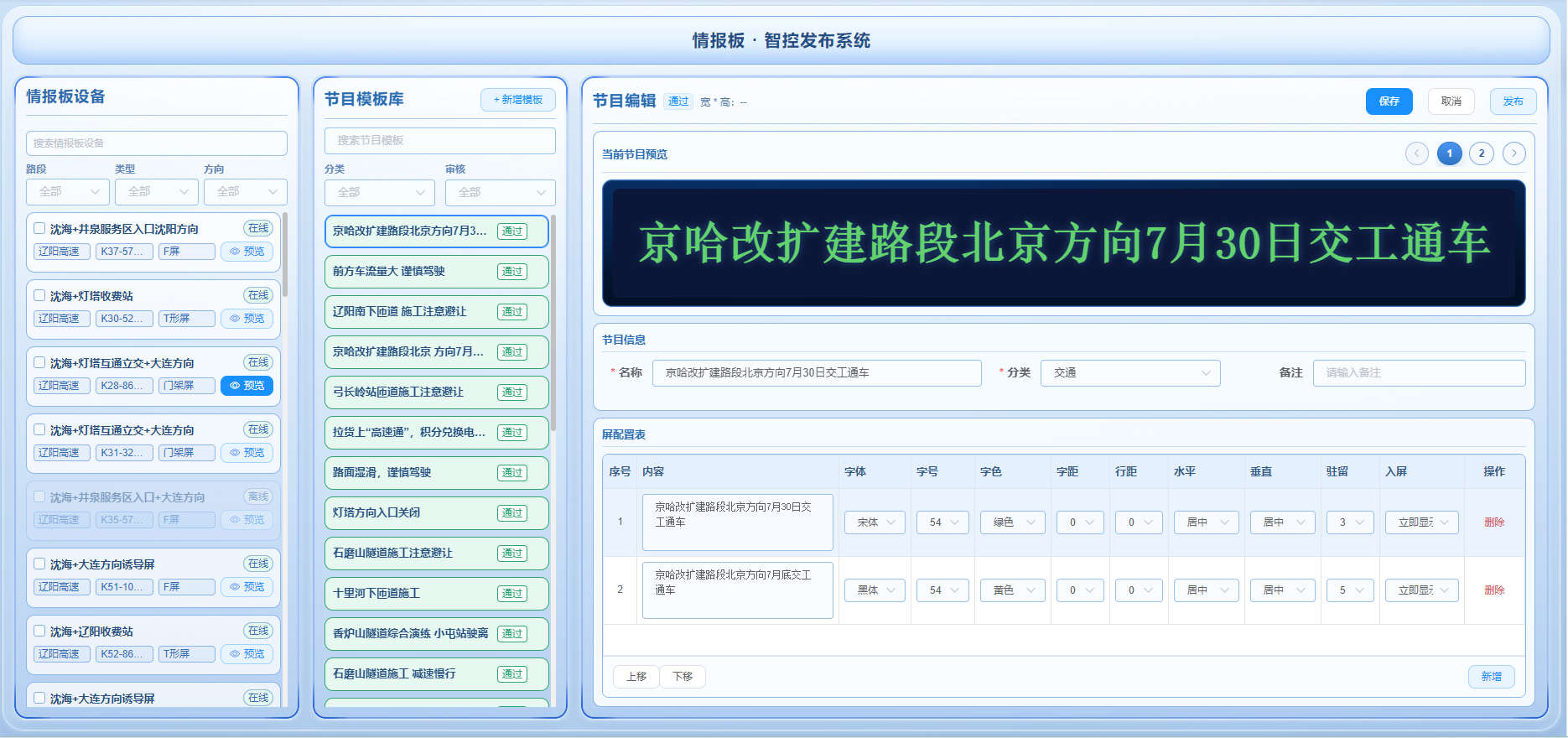 高速公路 LED 可变情报板,是面向公众的交通服务重要窗口,更是路网运行信息传递、交通疏导指挥的关键载体。其数量多、分布广的特点,对信息发布的安全性、准确性、高效性提出了极高要求。但传统情报板内容发布系统多为项目定制开发,缺乏专业统筹设计,误发漏发、恶意发布、传输被篡改、设备对接难等问题频现,成为高速公路信息化建设中的安全痛点。