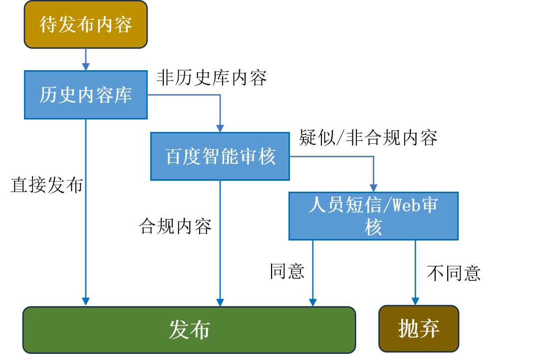 1.缺乏智能审核技术手段,存在误发布、恶意发布的风险;